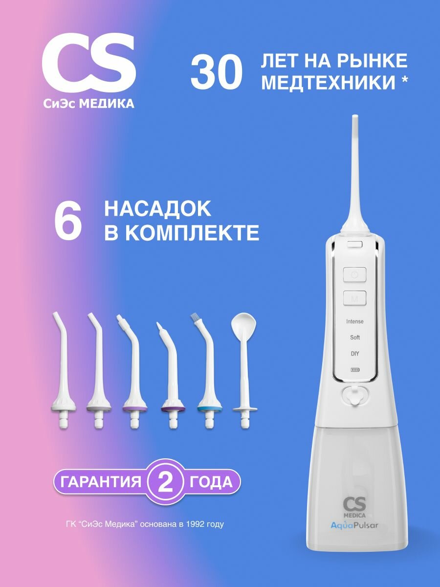 Набор портативный ирригатор полости рта CS Medica AquaPulsar CS-8 Elite MoonWhite (белый) и Электрическая звуковая зубная щетка CS Medica CS-9230-H: сравнение цен, характеристики, фото, актуальное наличие и цены.