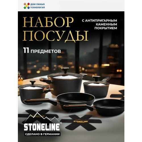 Набор посуды 11 предметов STONELINE с крышками, кастрюлями и сковородками с каменным покрытием и индукционным дном: сравнение цен, характеристики, фото, актуальное наличие и цены.