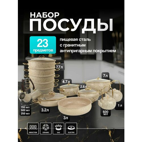 Набор посуды 23 предмета — это идеальное решение для тех, кто ценит удобство, долговечность и эстетичность на кухне. В комплект входят: