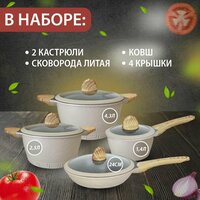 | Состав набора | кастрюля, ковш, сковорода, сотейник |