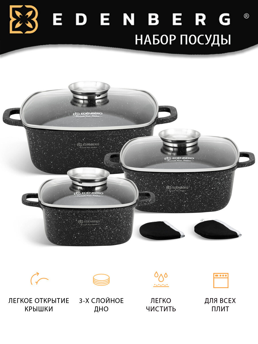 Купить Набор посуды 8 предметов с трехслойным мраморным покрытием с доставкой по всей России. Набор посуды 8 предметов с трехслойным мраморным покрытием: сравнение цен, характеристики, фото, актуальное наличие и цены.