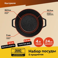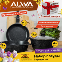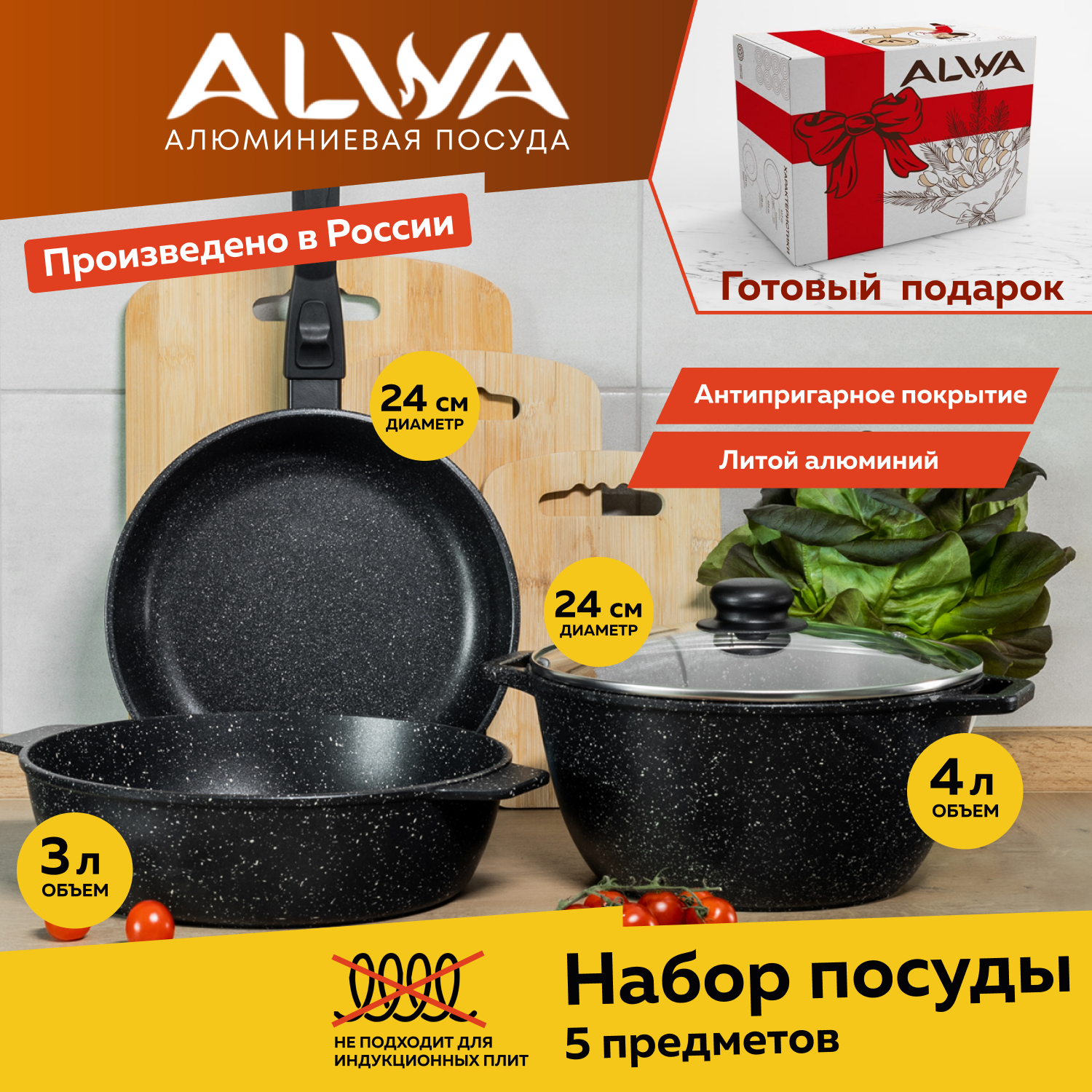Набор посуды для приготовления от ТМ "ALWA" - это идеальный выбор для тех, кто ценит удобство и комфорт на кухне. Состоит из: сковорода с антипригарным покрытием диаметром 24 см со съемной ручкой, кастрюля антипригарная 4 л, жаровня алюминиевая литая 3 л и стеклянная крышка 24 см. Кастрюли и сковороды выполнены из литого алюминия с антипригарным покрытием, что позволяет готовить без использования масла. Мы производим все наши изделия в России, благодаря высокотехнологичному оборудованию они безупречного качества и по доступной цене, соответствуют стандартам качества и ГОСТ, комплектуются инструкцией по эксплуатации и надежно упакованы. Одной из главных преимуществ является его прочность и долговечность. Сковородка набор кастрюль изготовлена из высококачественных материалов и имеет длительный срок службы. Обращаем Ваше внимание, что мы используем ручки с более плотным креплением, которое рассчитано на более чем 3500 циклов использования и не расшатается в при эксплуатации. Поэтому они требуют разработки. Просим Вас приложить чуть больше усилий при первом креплении, ее необходимо вставить под углом 45*, а затем опустить вниз до характерного щелчка! Щелчок означает, что она надежно зафиксирована. В дальнейшем прирабатывается и легко крепится к ней. Набор антипригарный идеально подходит для приготовления различных блюд, от супов и каши до жаркого и выпечки. Он также может использоваться для подачи блюд на стол благодаря своей стильной и красивой форме. Сковорода посуда и инвентарь легко моется в посудомоечной машине и не требует особого ухода. Отличный подарок женщине или девушке, на день рождения, 8 марта, новый год, рождество, масленицу для мамы, бабушки, коллеге, сестре, подруге, любимому папе, парню, другу, дедушке, мужчине или подарок мужу на др, 23 февраля, юбилей, свадьбу, годовщину, новоселье. Товары для кухни из кострюли посуда от ТМ "альва" - это отличный выбор для тех, кто ищет удобную и функциональную кухонную утварь. Он подходит для использования на любой плите, кроме индукционных, и может использоваться как в помещении, так и на улице. Используйте в туризм/походы походная кухня, кемпинг, мангал, на даче, в лесу. Набор подарочный станет незаменимым помощником в вашем доме и позволит вам наслаждаться вкусными блюдами в любое время. Заходите к нам в магазин и выбирайте для себя сковородку с крышкой, термокастрюля, гриль, ковш и многое другое.