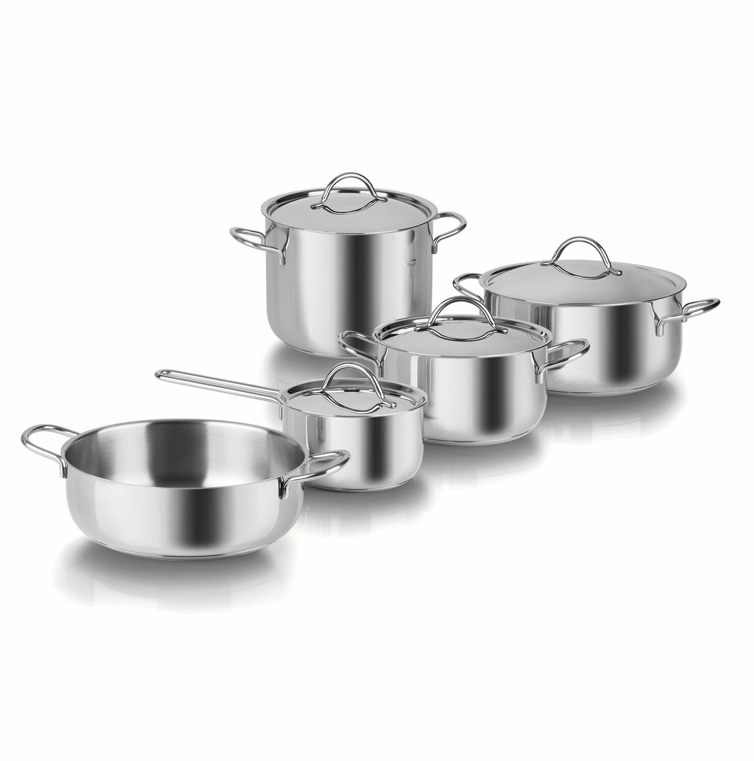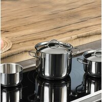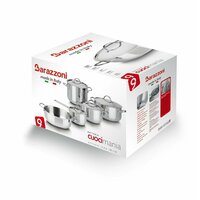 Серия Cuocimania от компании Barazzoni – это оригинальные кастрюли, сотейники, ковши, а также другая кухонная посуда, изготовленная из гигиеничной и долговечной нержавеющей стали 18/10 (марка AISI 304). Предметы имеют утолщенное трехслойное основание с алюминиевым сердечником, благодаря которому обеспечивается оптимальное распределение тепла по всей поверхности. Посуда идеально подходит для интенсивного повседневного использования.