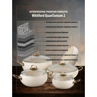 Комплект посуды изготовлен из литого алюминия с особо прочным трехслойным антипригарным покрытием Quantum2 внутри и снаружи, на основе гранитно-минеральной крошки.