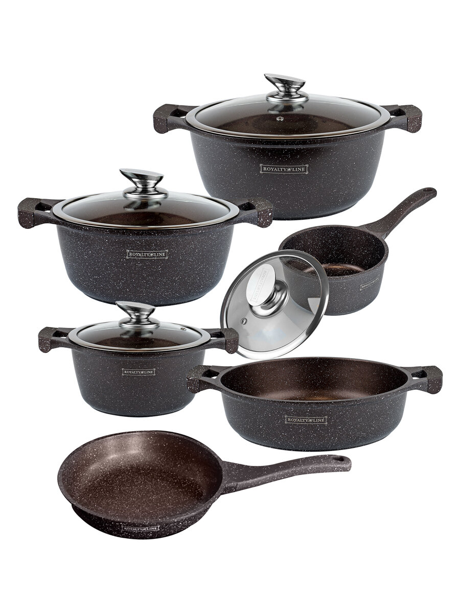 Набор посуды для приготовления Royalty Line, 10 предметов. Мраморное антипригарное покрытие.: сравнение цен, характеристики, фото, актуальное наличие и цены.