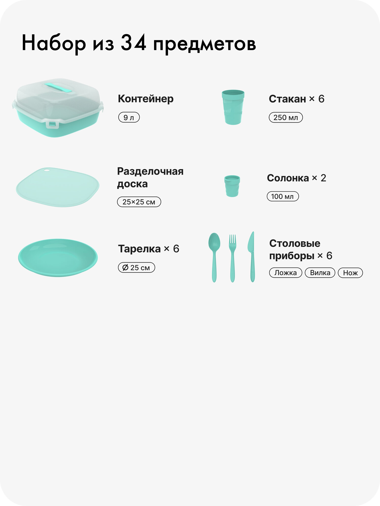 | Материал столовых приборов | пластик |