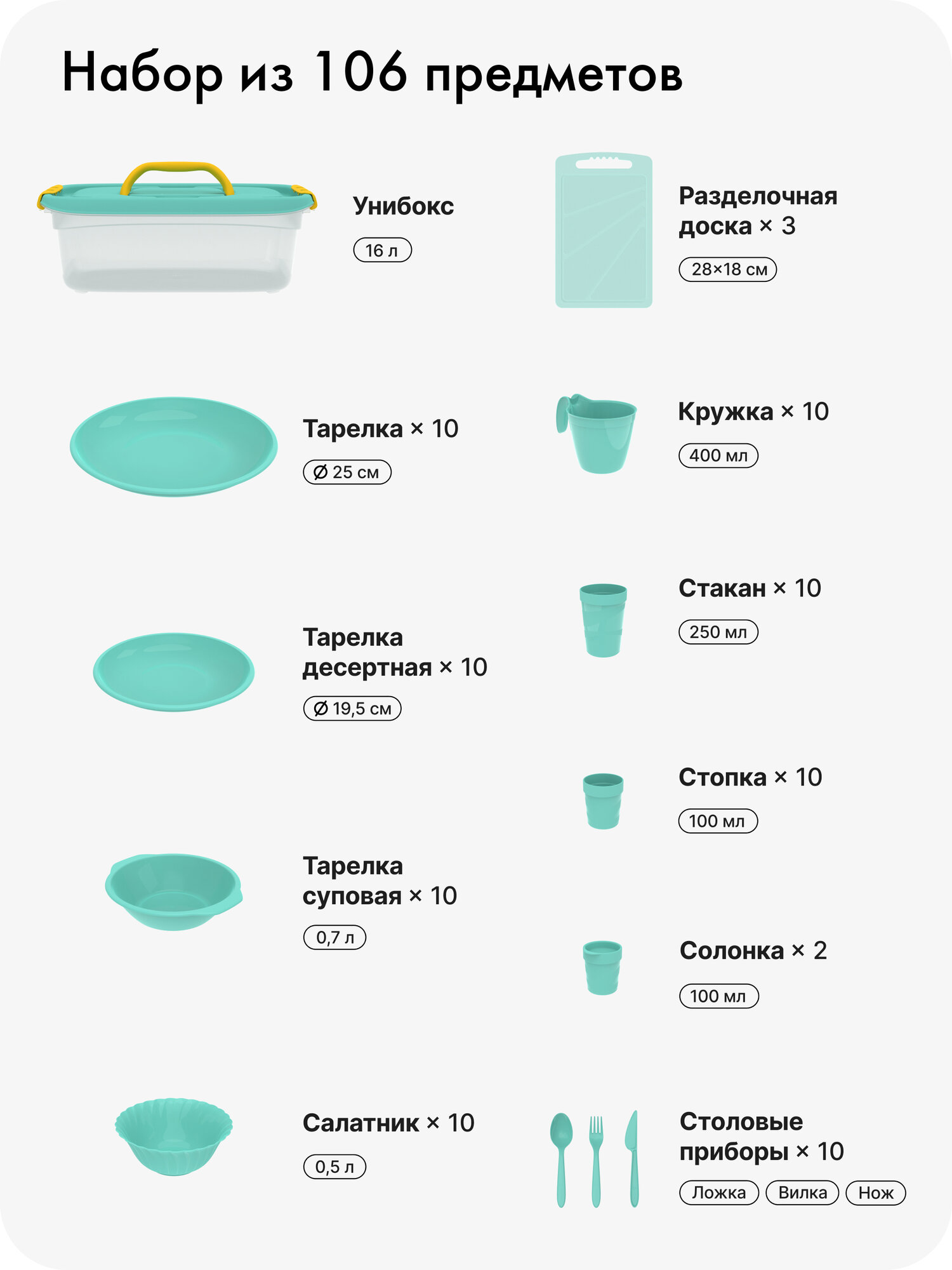 | Материал столовых приборов | пластик |