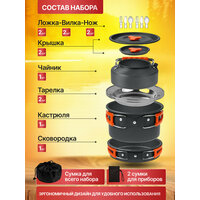 Подходит для использования 2-3 человеками, этот набор также включает в себя две тарелки, ложки, вилки и ножа для каждого участника похода. Два дополнительных мешка для приборов обеспечивают легкость в организации и хранении всего набора. Независимо от того, отправляетесь ли вы в поход, пикник или кемпинг, набор посуды для похода Bara 16шт станет надежным спутником, обеспечивая удобство и функциональность в любых условиях.