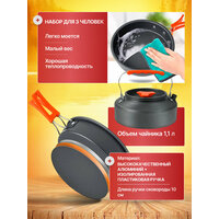 Характеристики: Материал: высококачественный алюминий + изолированная пластиковая ручка Объем чайника: 1,1 л Длина ручки сковороды: 10 см Применимое количество людей: 2-3 человека Особенности: легко моется, малый вес и хорошая теплопроводность