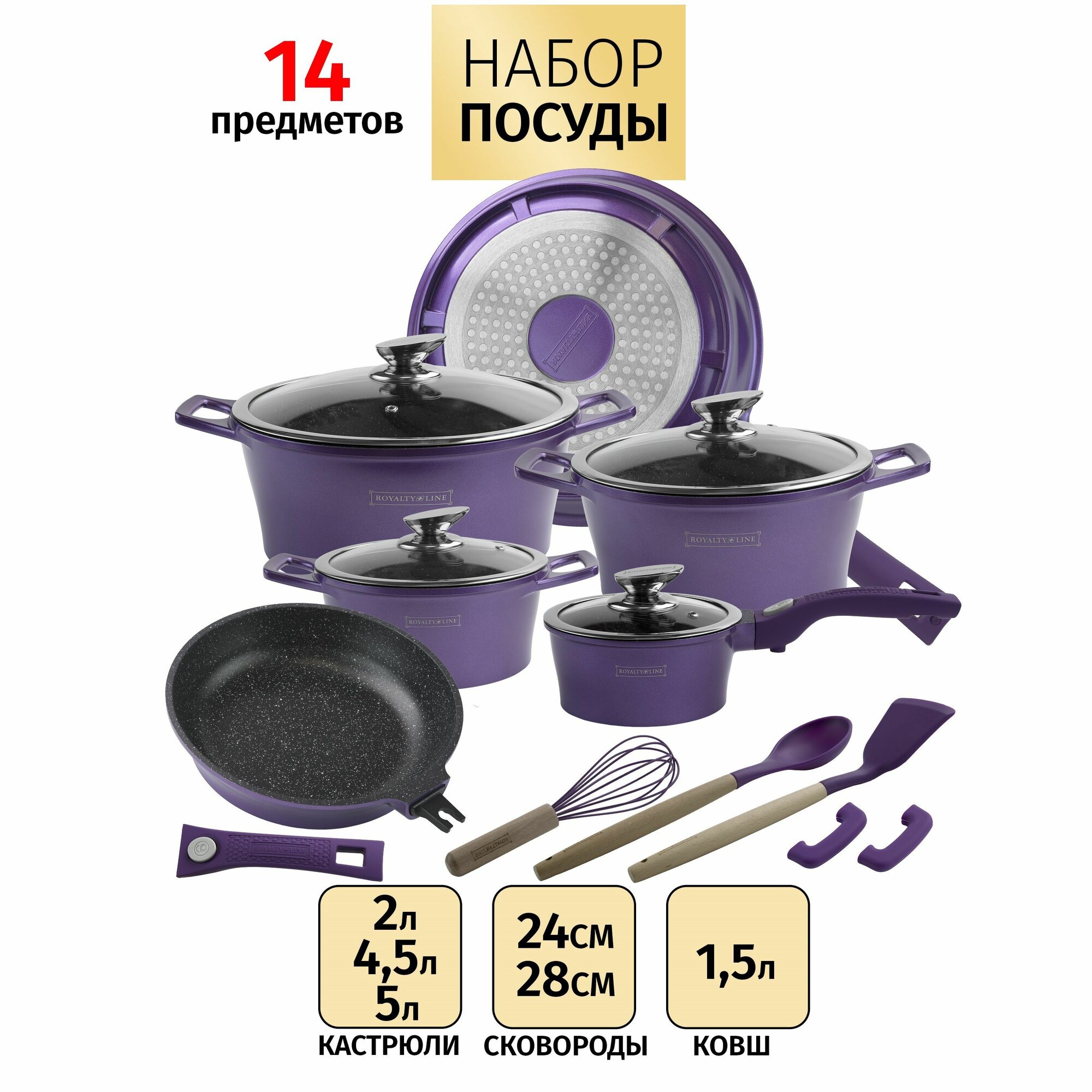 Этот великолепный набор посуды для приготовления пищи станет незаменимым помощником на вашей кухне. В него входят 14 предметов, включая кастрюли с крышками, которые идеально подходят для использования на индукционных плитах. Кастрюли выполнены с инновационным мраморным покрытием, обеспечивающим равномерное распределение тепла и препятствующим пригоранию пищи. Это позволяет готовить здоровую и вкусную еду, не беспокоясь о сложностях в уходе за посудой.