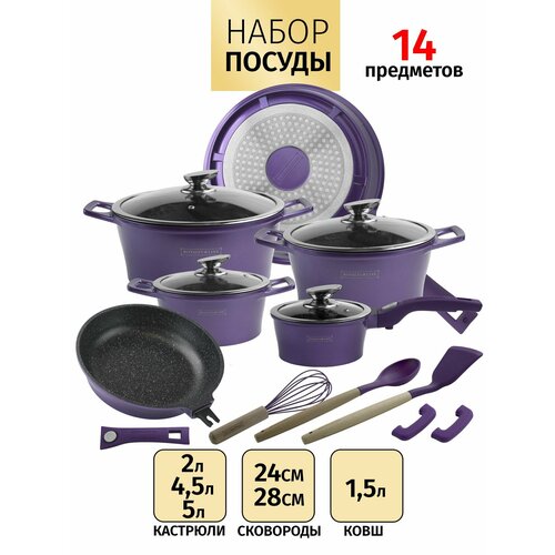 Представляем вашему вниманию набор посуды для приготовления пищи, который станет незаменимым помощником на вашей кухне. Этот комплект включает в себя 14 предметов, среди которых кастрюли и сковородки с мраморным покрытием, что обеспечивает не только долговечность, но и легкость в уходе. Оптимальный выбор для тех, кто ценит качество и функциональность в кухонной утвари.