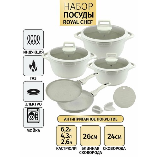 Набор посуды для приготовления Royal Chef 11 предметов. Антипригарное покрытие. Цвет бежевый.: сравнение цен, характеристики, фото, актуальное наличие и цены.