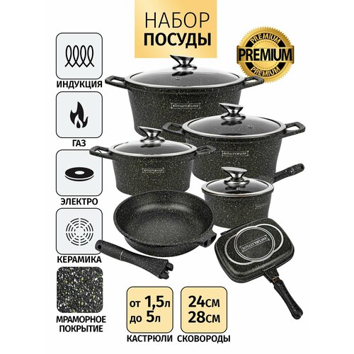 Набор посуды для приготовления Royalty Line, 14 предметов. Мраморное антипригарное покрытие.: сравнение цен, характеристики, фото, актуальное наличие и цены.