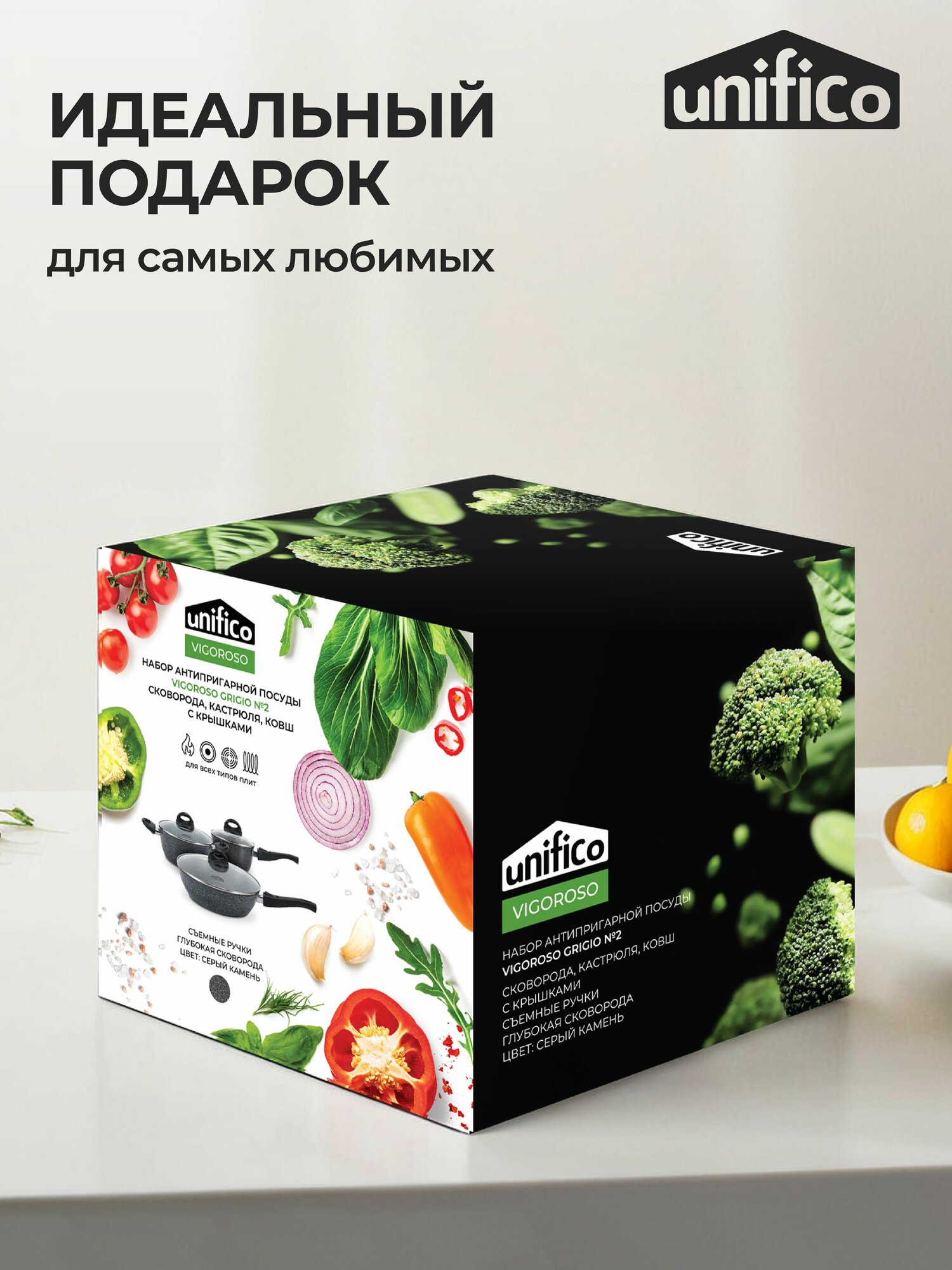 Купить Набор посуды для приготовления с крышками для индукционной плиты Unifico Vigoroso Grigio (сковорода, ковш кухонный, кастрюля) с доставкой по всей России. Набор посуды для приготовления с крышками для индукционной плиты Unifico Vigoroso Grigio (сковорода, ковш кухонный, кастрюля): сравнение цен, характеристики, фото, актуальное наличие и цены.