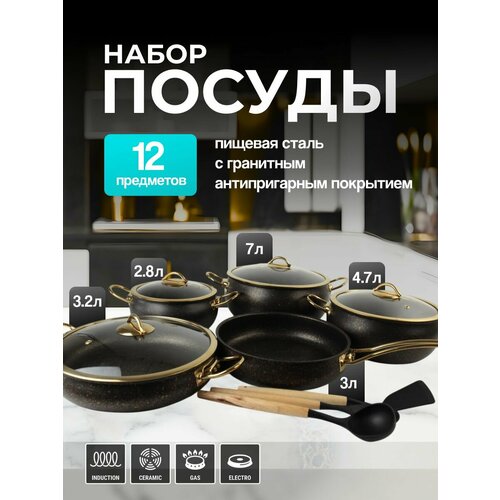 Набор кастрюль 12 предметов — идеальное решение для тех, кто ценит практичность, надёжность и стиль на кухне. В состав входят: