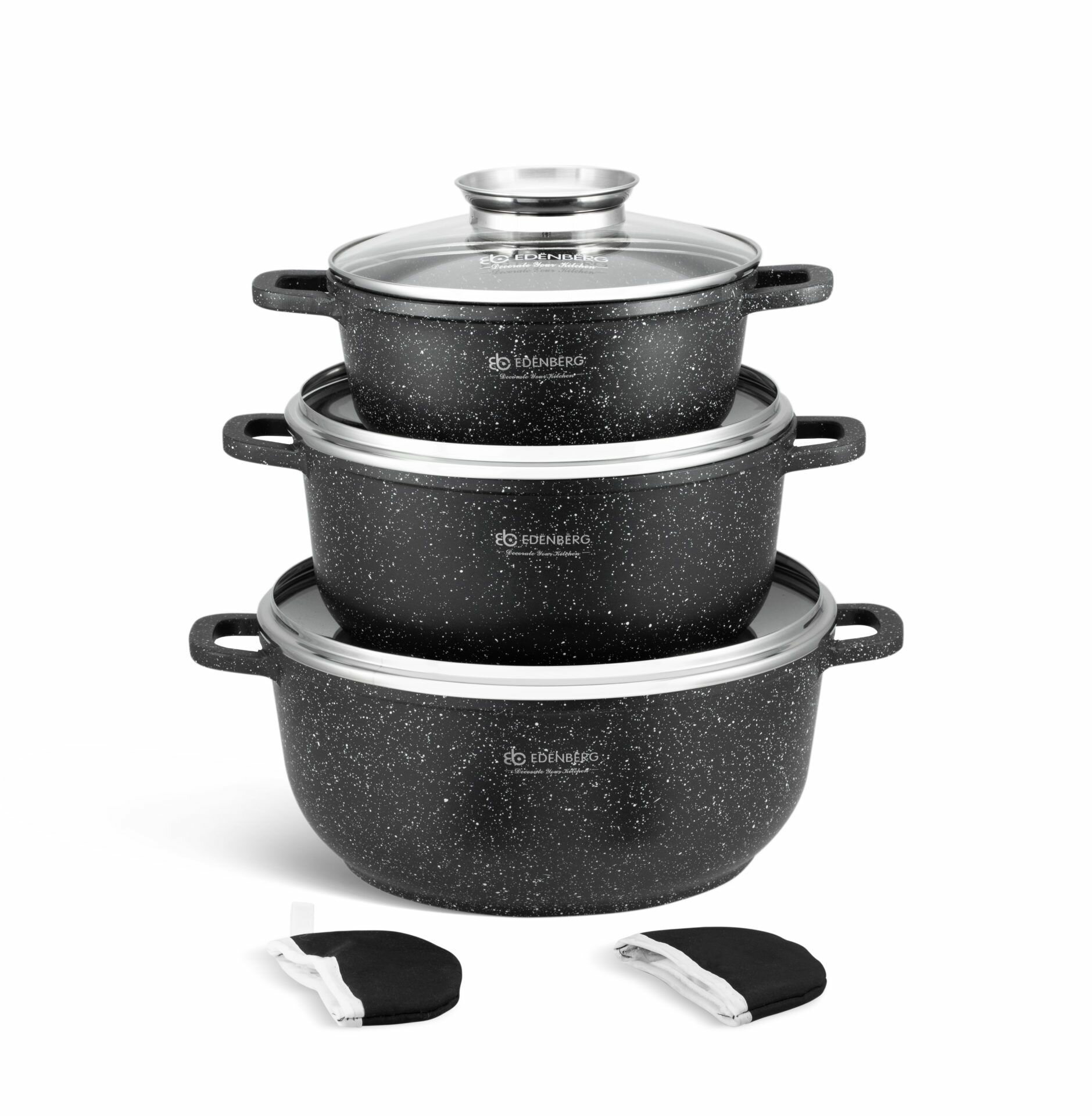 Купить Набор посуды EB-8140 Edenberg из литого алюминия с мраморным покрытием 6 предметов с доставкой по всей России.