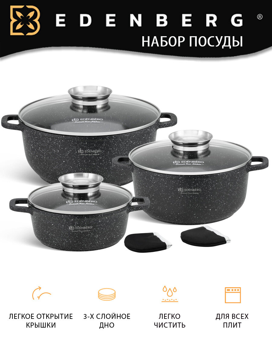 Набор посуды EB-8140 Edenberg из литого алюминия с мраморным покрытием 6 предметов: сравнение цен, характеристики, фото, актуальное наличие и цены.