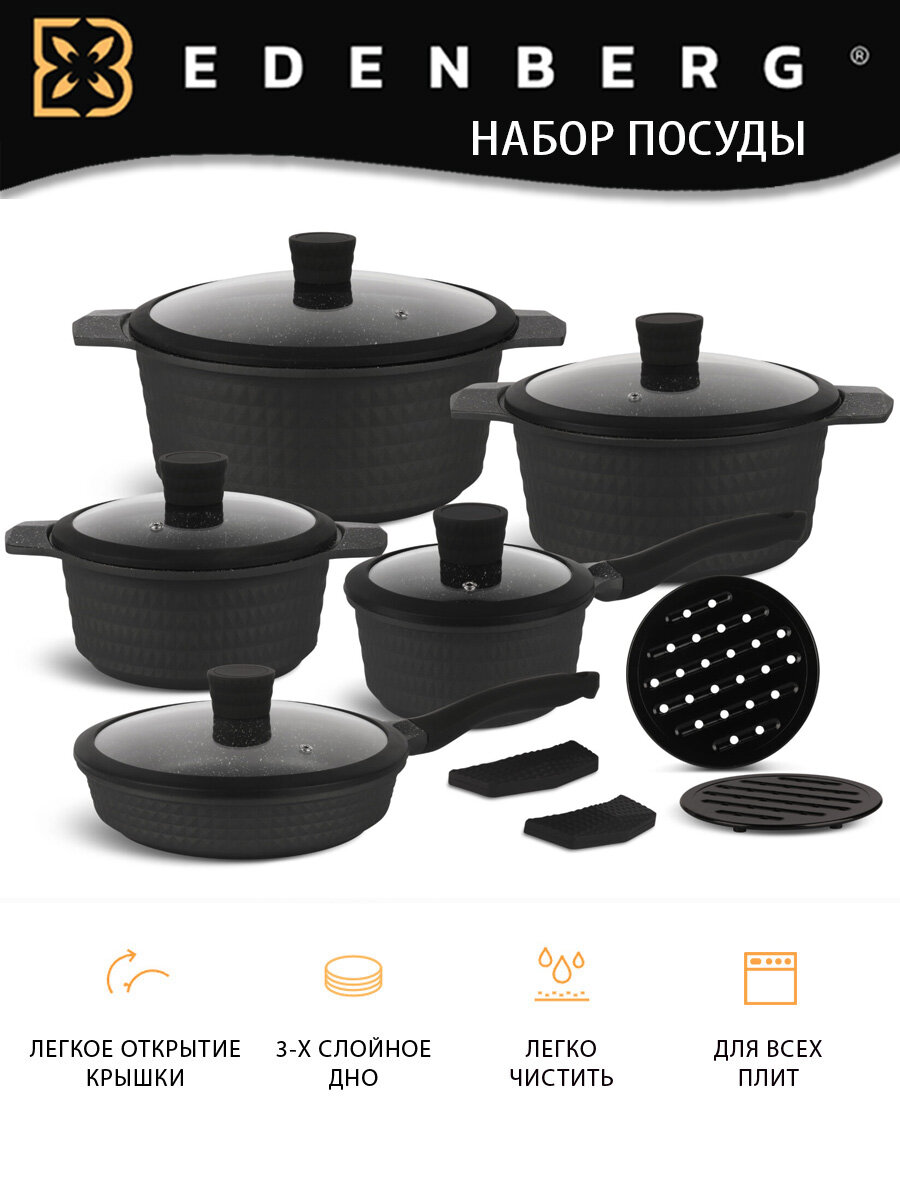 Купить Набор посуды для приготовления EDENBERG 12 предметов с доставкой по всей России. Набор посуды для приготовления EDENBERG 12 предметов: сравнение цен, характеристики, фото, актуальное наличие и цены.