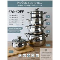 Купить Набор посуды FANHOFF из нержавеющей стали с крышками, 10 предметов с доставкой по всей России.