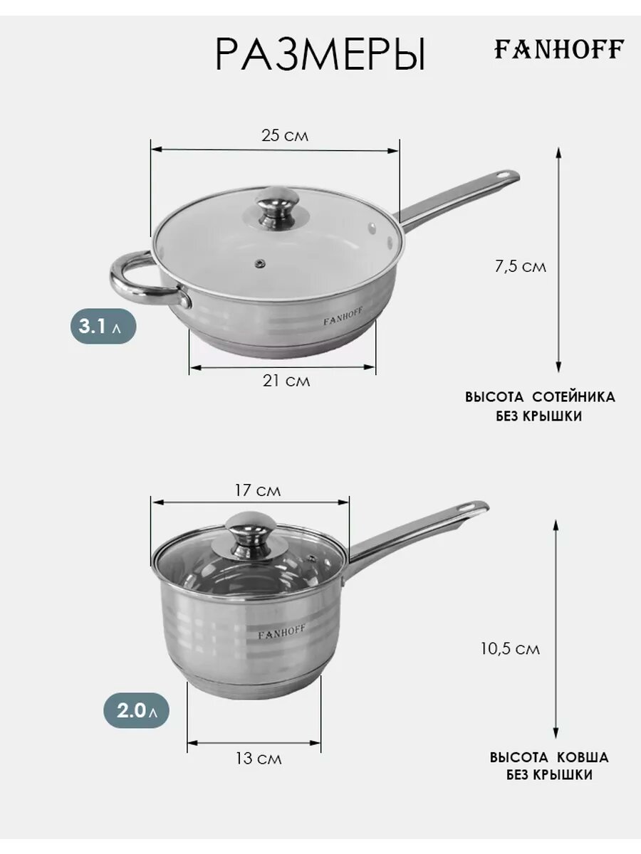 Набор посуды FANHOFF из нержавеющей стали с крышками, 8 предметов: сравнение цен, характеристики, фото, актуальное наличие и цены.