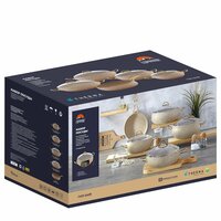 Набор алюминиевый Горянка 9 предметов ГНП-0419 Антипригарное покрытие: Therna PREMIUM Изготовлено из алюминия (Турция) Крышка: стекло термостойкое боросиликатное PYREX Толщина стенок: 4 мм , Индукционное дно Нельзя мыть в посудомоечной машине Кастрюля : диаметр 20 см, высота 9 см, объем: 2,5 л Кастрюля : диаметр 24 см, высота 10 см, объем: 4,5 л Кастрюля : диаметр 28 см, высота 12 см, объем: 6,5 л Жаровня: диаметр 28 см, высота 7,5 см, объем: 3,5 Сковорода: диаметр 28 см, высота 7,5 см, объем: 3,5