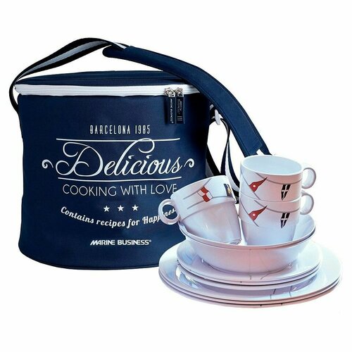 Набор посуды "Regata", 16 предметов (10266823). Набор посуды из меламина — стойкого к ударам и царапинам керамоподобного пластика. 4 плоских тарелки, 4 суповых миски, 4 десертные миски, 4 кружки. Коллекция Regata. Цвет на борту! Небьющуюся меламиновую посуду можно мыть в посудомоечной машине. У основания всех кружек, тарелок и мисок есть нескользящие кольца. Яркий дизайн бокалов и чашек, устойчивый к падениям. Цена за набор. Производитель: "Marine Business", Испания. Идеальное решение для использования на борту любого судна.