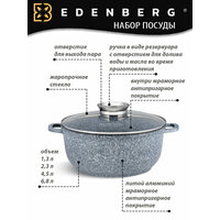 Купить Набор посуды с антипригарным мраморным покрытием, литой алюминий Edenberg, 8 предметов с доставкой по всей России.