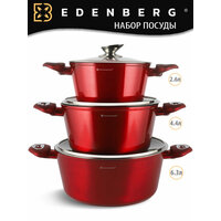 Набор посуды состоит из 8 предметов 3 кастрюли, 3 крышки и 2 подставки. Размер 20х10.5см, объем 2.6л. Размер 24x12см, объем 4.4л. Размер 28х12.5см, объем 6.3л. Диаметр дна кастрюль 15,5см, 18,5см, 22см. Стеклянные закаленные крышки с пароотводом. На крышках ободок из нержавеющей стали, ручка так же из нержавеющей стали. Посуда изготовлена из литого алюминия. Многослойное мраморное антипригарное покрытие обеспечивая прочность посуды. Служит долго, не боится механических воздействий, более устойчив к повреждениям и царапинам, в том числе превосходит по характеристикам даже керамические покрытия. Посуду можно мыть в посудомоечной машине. Набор посуды при правильной эксплуатации прослужат долго. Подходит для всех типов плит, включая индукционные.
