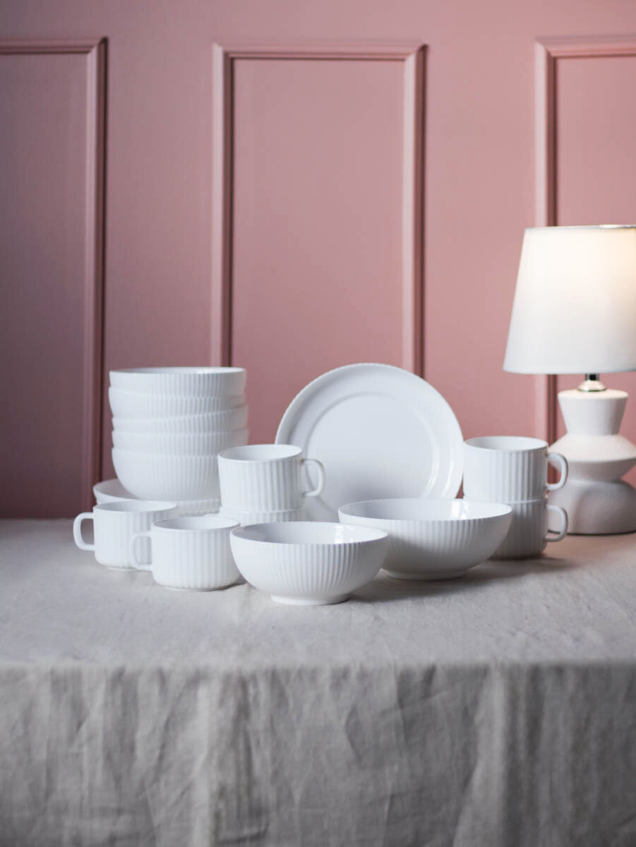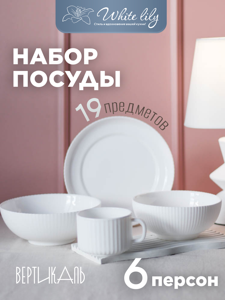 Столовый набор на 6 персон в классическом белом исполнении сери "Вертикаль", который станет идеальным выбором для любого случая. Этот набор, разработанный специально для основных блюд, позволит вам насладиться каждым моментом вашей трапезы.
