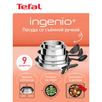 Набор посуды со съемной ручкой Tefal Ingenio Cook Eat L881S904, 9 предметов, нержавеющая сталь: сравнение цен, характеристики, фото, актуальное наличие и цены.