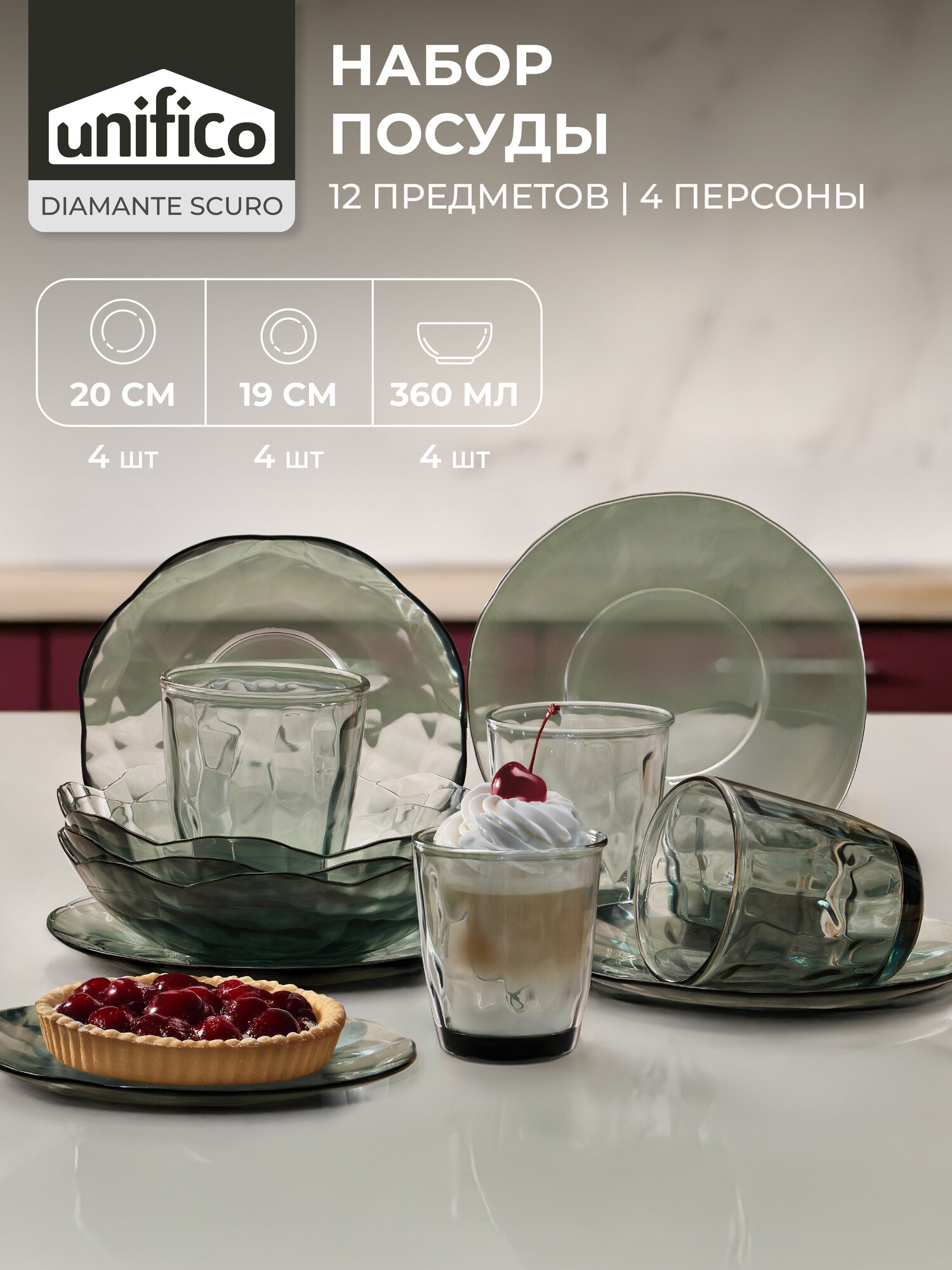 Купить Набор посуды столовой 12 предметов на 4 персоны «Diamante Scuro», Unifico рельефное стекло с доставкой по всей России. Набор посуды столовой 12 предметов на 4 персоны «Diamante Scuro», Unifico рельефное стекло: сравнение цен, характеристики, фото, актуальное наличие и цены.