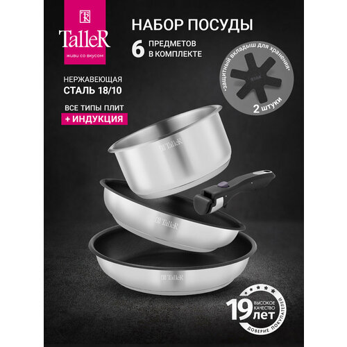 Набор посуды TalleR — ваш ключ к мастерству на кухне. Он объединяет в себе безупречное качество материалов, продуманную функциональность и компактность, чтобы вы могли готовить с удовольствием и хранить посуду без хлопот.
