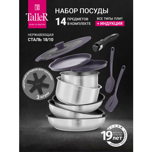 Набор посуды TalleR — ваш ключ к мастерству на кухне. Он объединяет в себе безупречное качество материалов, продуманную функциональность и компактность, чтобы вы могли готовить с удовольствием и хранить посуду без хлопот.