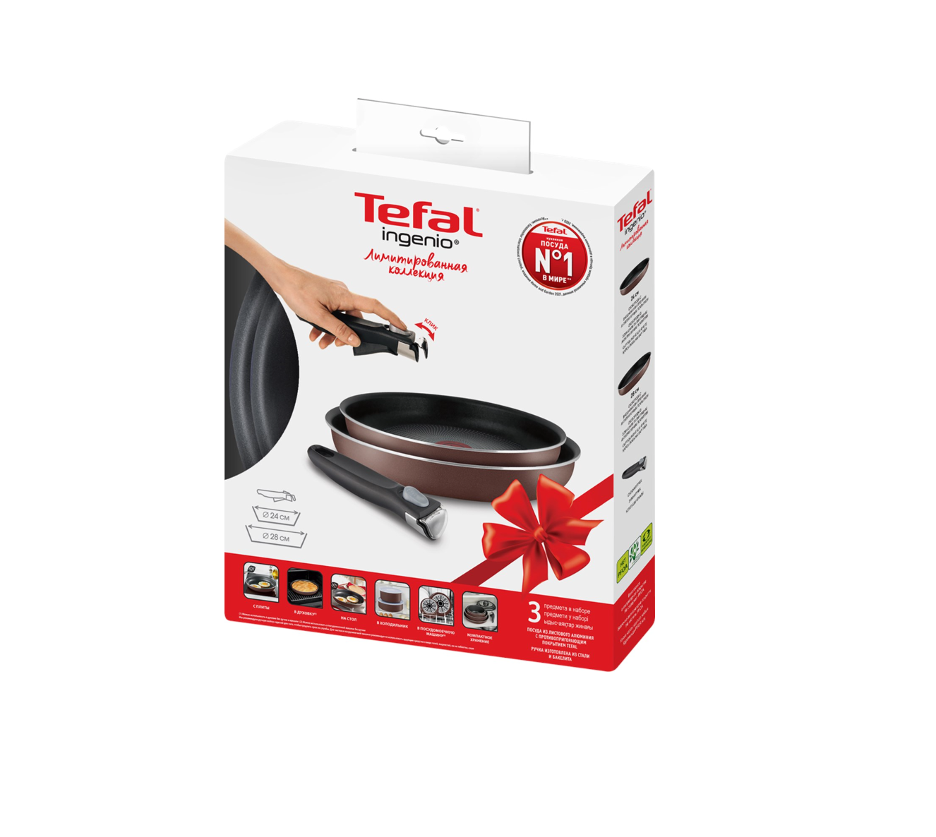 Набор посуды TEFAL Ingenio 3 предмета: сковороды 24см, сковороды 28см, съемная ручка: сравнение цен, характеристики, фото, актуальное наличие и цены.