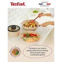 Кухонный набор для приготовления выполнен в стильном бежевом глиняном цвете и оснащен съемной ручкой для удобства хранения и использования. Каждое изделие из набора имеет край для легкого слива жидкости, что добавляет дополнительное удобство при готовке. А удобный размер и практичность делают набор Тефаль отличным выбором для приготовления различных блюд дома, от простых до более сложных. В комплект входят: ковш 18 см, сковородка 28 см, сковорода вок 26 см, стеклянная и пластиковая крышка 18 см и съемная ручка. Произведенный во Франции, этот набор сочетает высокое качество и современные технологии, делая каждый процесс приготовления пищи приятным и легким.