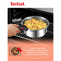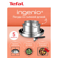 Набор посуды со съемной ручкой Tefal Ingenio Emotion L897S574. Новая серия посуды Ingenio создана, чтобы вы могли каждый день без лишних усилий добиваться превосходных результатов на кухне. Превратите сковороду или ковш в форму для запекания или емкость для хранения в холодильнике с помощью изящной съемной ручки, которая легко отсоединяется в одно движение. Оснащенная 3-точечной системой безопасности, эта практичная ручка надежно фиксируется и способна выдерживать нагрузку до 10 кг, а ее безопасность подкреплена нашей 10-летней гарантией. Серия Ingenio Emotion выполнена в элегантном современном дизайне и изготовлена из высококачественной нержавеющей стали, гарантия на которую составляет 5 лет. Толстое дно посуды обеспечивает равномерное приготовление блюд, позволяя в полной мере раскрыть вкус и аромат каждого ингредиента. Прочное и безопасное титановое покрытие гарантирует исключительные антипригарные свойства и впечатляющую долговечность.