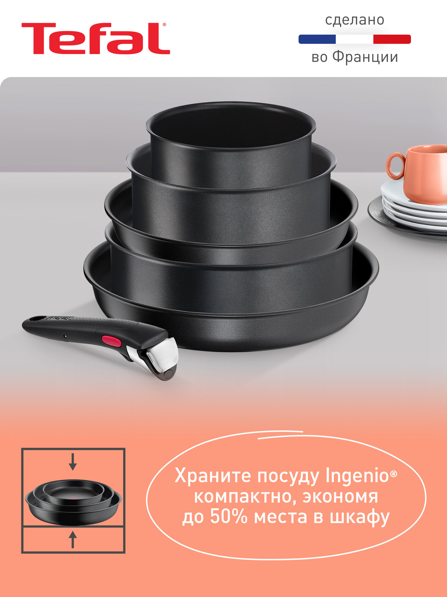 Набор посуды со съемной ручкой Tefal Ingenio Daily Chef L7629142 - посуда, которая буквально готова на все. Посуда Ingenio создана специально для того, чтобы сделать процесс приготовления пищи дома максимально легким. Приготовьте ингредиенты на плите, поставьте блюдо доготавливаться в духовку, а остатки отправьте в холодильник прямо в посуде благодаря изящной съемной ручке. Ее надежная 3-ступенчатая система фиксации позволяет ручке выдержать вес до 10 кг и защищена 10-летней гарантией производителя. Ingenio каждый день экономит ваши время и силы на кухне. Посуда Daily Chef создана для того, чтобы сделать ежедневное приготовление еды максимально простым. Благодаря сверхпрочному антипригарному покрытию готовить в посуде и мыть ее после – очень легко, поэтому каждая минута, проведенная на кухне, не покажется рутиной! Откройте для себя идеальный набор для всех ваших кулинарных предпочтений, который поможет готовить полезные блюда без масла и будет радовать вас безупречными результатами день за днем. Технология Thermo-Fusion+™ обеспечивает быстрый и равномерный нагрев посуды, а инновационный индикатор температуры Thermo-Signal™ гарантирует приготовление всех ингредиентов при правильной температуре. Готовьте легко и с удовольствием с посудой Daily Chef! Благодаря сверхтвердым кристаллам, которые обеспечивают максимальную прочность и надежность в течение долгого времени, антипригарное покрытие Titanium Anti-Scratch служит в 6 раз дольше, чем стандартное покрытие Tefal Titanium. Индикатор Thermo-Signal становится полностью красным, когда сковорода достигает идеальной температуры для начала приготовления, гарантируя превосходное качество обжарки, текстуру, цвет и вкус. Сочные блюда каждый день! Дизайн посуды отвечает всем вашим пожеланиям на кухне: антипригарное покрытие внутри и снаружи обеспечивает комфортное использование и облегчает уход за посудой. Посуда подходит для использования на газовых, электрических, стеклокерамических и индукционных плитах. Сочетая большую решетку и толстое дно, технология Thermo-Fusion+ гарантирует быстрый нагрев и равномерное распределение тепла по всей поверхности посуды для качественного приготовления и аппетитных результатов день за днем. В рамках нашего обязательства по производству качественной и безопасной посуды мы создаем антипригарное покрытие без использования PFOA, свинца и кадмия. Посуда протестирована независимыми лабораториями с применением более строгих мер контроля, чем этого требуют современные правила производства товаров, связанных с питанием.