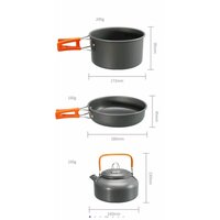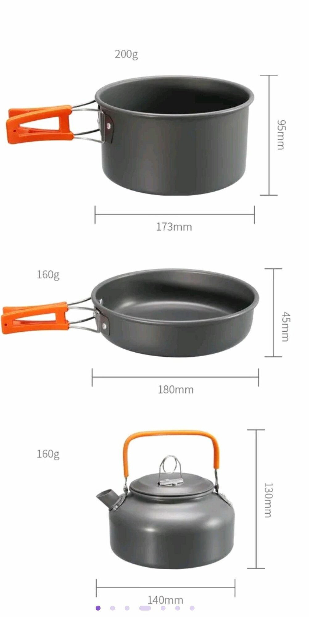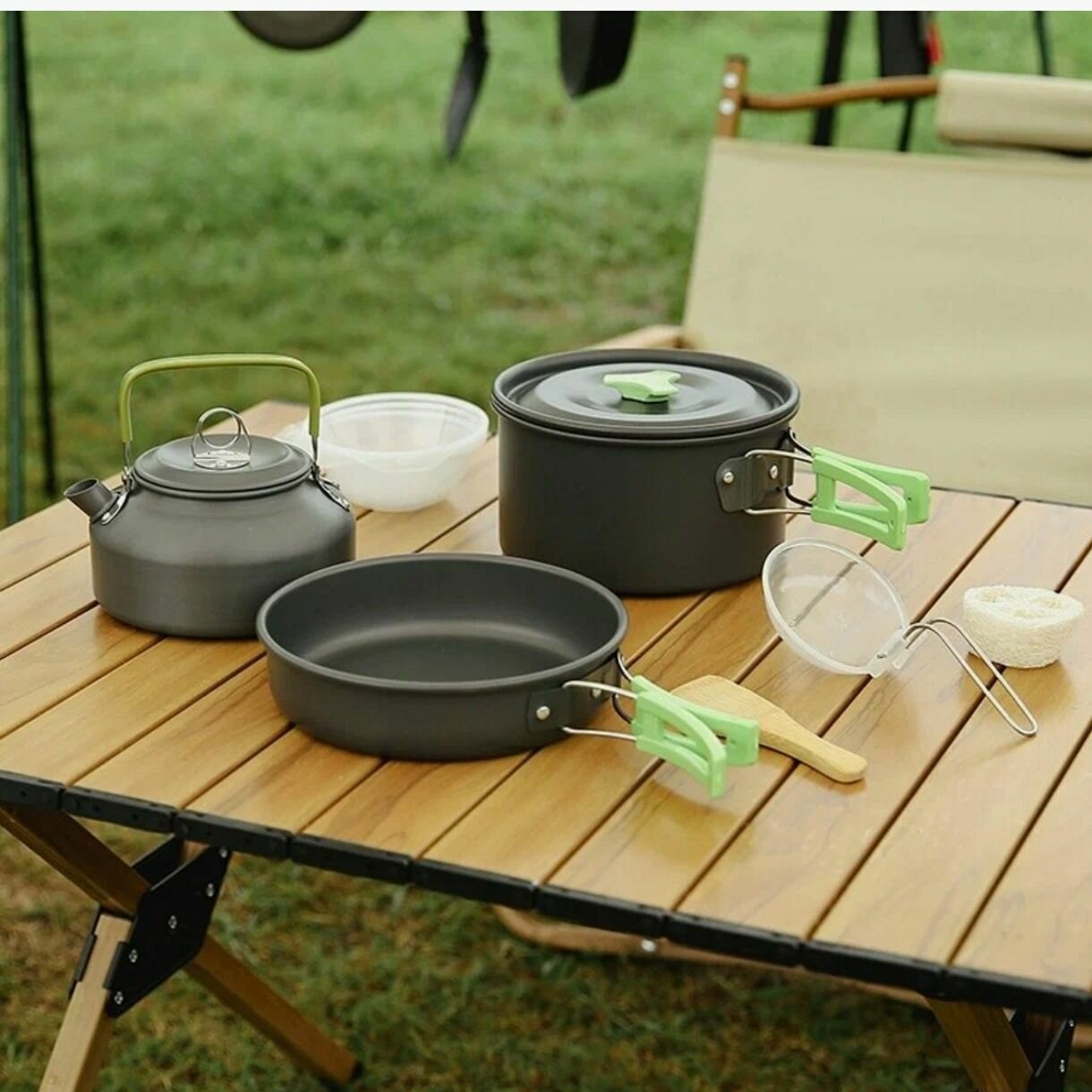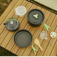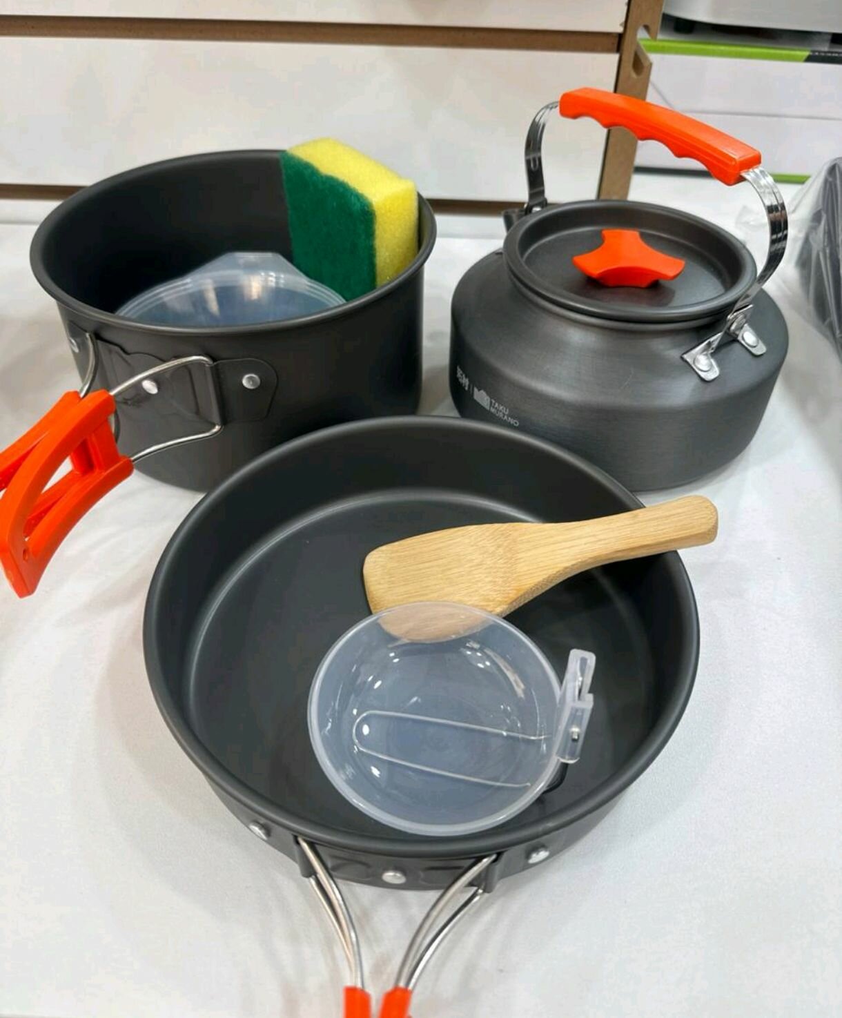 Этот набор туристической посуды идеально подходит для приготовления пищи во время отдыха, рыбалки или любых других outdoor-активностей. Компактный, легкий и удобный в использовании, он позволит вам легко готовить вкусные и горячие блюда в самых разнообразных условиях.
