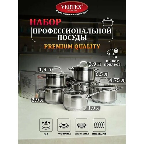 Купить Набор посуды Vertex Santorino, нержавеющая сталь, антипригарное покрытие с доставкой по всей России. Набор посуды Vertex Santorino, нержавеющая сталь, антипригарное покрытие: сравнение цен, характеристики, фото, актуальное наличие и цены.