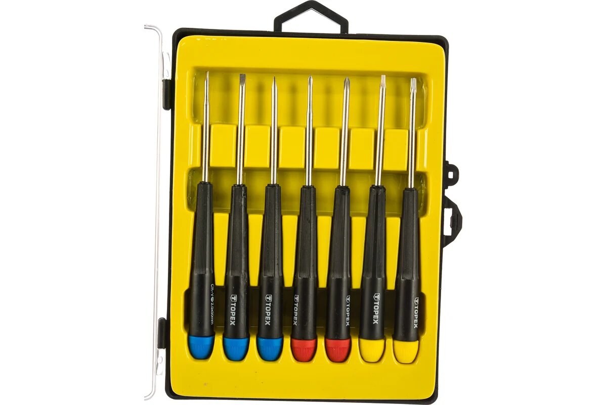 Купить Набор прецизионных отверток TOPEX 7 шт. 39D552 с доставкой по всей России. Набор прецизионных отверток TOPEX 7 шт. 39D552: сравнение цен, характеристики, фото, актуальное наличие и цены.