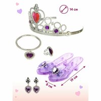 Детский игровой набор принцессы с короной и туфельками для сюжетных и ролевых игр. Подарочный набор для девочек выполнен в изящном дизайне и привлекательной цветовой гамме, роскошная бижутерия с имитацией драгоценных камней. Детские украшения изготовлены из прочных и долговечных материалов, прослужат много лет. В комплект входит пара туфель, ободок - корона для девочки принцессы, браслет, пара сережек, кольцо. У детской короны растягивается ободок, подойдет практически для любого размера головы. Крепление сережек клипсы, не требуют прокола ушек и не давят. Ободок кольца растягивается. Такой детский набор модницы с аксессуарами станет замечательным подарком девочке на новый год, день рождения, 8 марта или любой другой повод. Благодаря таким украшениям модница почувствует себя настоящей принцессой, аксессуары украсят любой праздничный или повседневный наряды. Бижутерия дополнит образ и поможет создать свой уникальный и неповторимый стиль, выразить свою индивидуальность. Подойдёт для новогоднего образа, для утренника в детском саду, карнавала или маскарада в школе. 7 предметов. Изготовлено из качественного полимера. Размеры туфли 19х8х5 см. Размеры стельки 19х6 см. Размеры ободка с короной 14х12х7 см. Размеры кольца 2х2х2 см. Внутренний диаметр 1,5 см. Диаметр браслета 6 см. Размеры сережки 2х1х5 см. Размеры упаковки 16х7х31 см.