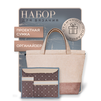Набор: проектная сумка для вязания и рукоделия (большого размера: высота 28,5 см, ширина 41 см, дно 14,5 х 27 см) и органайзер для крючков и спиц (размер 24 см х 29 см). Сумка и органайзер из плотной ткани кремового цвета. Набор выглядит максимально эффектно и очень стильно за счет рисунка "Херрингбоун" (ткань “в ёлочку”) Такой будет, только у Вас! Теплота и спокойствие природы заложена в сочетании цветов. Проектная сумка украшена тканью-компаньон светло-бежевого цвета. Сумка на подкладке коричневого цвета с молочным рисунком затягивается на шнурок с двух сторон. Внутри сумки по всему периметру 13 карманов разного размера - от самых узких: для крючков, ножниц(сниппера), ручки, маркера, сантиметровой ленты, наперстка, до самых вместительных: для набора спиц, схем, блокнота, телефона, подставки под телефон, счетчика рядов и других принадлежностей, которые будут у Вас всегда под рукой. Сумка поможет организовать рабочие пространство и держать в порядке все нужные инструменты для рукоделия. Имеются две ручки длинной 40 см, металлический люверс для пряжи (диаметр отверстия 14 мм, подойдет для любого типа пряжи), разъемное кольцо с маркерами в подарок и небольшой магнит для временного прикрепления маленьких металлических предметов. Органайзер для хранения спиц, крючков и инструментов для вязания, кисточек, фломастеров, карандашей. Органайзер имеет 16 карманов различного размера, украшенных кружевом. Набор вязальщицы удобно брать с собой в дорогу, на прогулку, в путешествие, везде, где можно присесть и получить удовольствие от любимого занятия. Захотел повязать - достал набор, а все необходимое уже в нем. Набор для вязания - отличный подарок любимой маме и дочке, жене и бабушке, тёте и свекрови или сестре и коллеги по работе на день рождения, 8 марта, день матери, день учителя, 14 февраля или Новый год. Обратите внимание: сумка и органайзер продается пустой, без внутреннего вязального реквизита, который есть на фотографиях. Изображения и цвет представленного товара могут незначительно отличаться от оригинала продукции, в зависимости от разрешения и настроек вашего монитора, а также условий освещения при съемке.