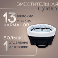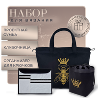 Роскошный набор включает в себя проектную сумку для вязания и рукоделия, органайзер для крючков и спиц, клубочницу. Размеры - сумка: высота 28,5 см, ширина 41 см, дно 14,5 х 27 см, органайзер: высота 24 см, ширина 29 см, клубочница: ширина 14.5 см, длина 14.5 см, высота 17 см. Каждая вещь украшена вышивкой золотыми нитями – пчела с короной, как символ благополучия, успешности, бессмертия и избранности. Внешняя ткань – велюр, шелковистая, нежная и приятная на ощупь, с эффектом дорогой матовой фактуры. Цвет: черный бархат. Внутренняя ткань-подкладка – белоснежный шёлк «Армани». Для верхней части клубочницы используется черный шёлк. Сочетание в уникальном наборе черного цвета, как цвета знати и золотого, как цвета власти, дают состояние абсолютного шика. Такой набор будет, только у Вас! Первое изделие - Проектная сумка на подкладке затягивается на шнурок с двух сторон при помощи металлических фиксаторов. Внутри сумки по всему периметру 13 карманов разного размера - от самых узких: для крючков, ножниц(сниппера), ручки, маркера, сантиметровой ленты, наперстка, до самых вместительных: для набора спиц, схем, блокнота, телефона, подставки под телефон, счетчика рядов и других принадлежностей, которые будут у Вас всегда под рукой. Сумка поможет организовать рабочие пространство и держать в порядке все нужные инструменты для рукоделия. Имеются две ручки длинной 40 см, металлический люверс для пряжи (диаметр отверстия 14 мм, подойдет для любого типа пряжи), разъемное кольцо с маркерами в подарок. Второе изделие - Органайзер для хранения спиц, крючков и инструментов для вязания, кисточек, фломастеров, карандашей. Органайзер имеет 16 карманов различного размера, украшенных кружевом. Третье изделие - Клубочница на подкладке, затягивается на шнурок с металлическим фиксатором. Пряжа и само изделие будет всегда чистыми и в идеальном порядке. Имеется одна ручка длиной 40 см. Набор вязальщицы удобно брать с собой в дорогу, на прогулку, в путешествие, везде, где можно присесть и получить удовольствие от любимого занятия. Захотел повязать - достал набор, а все необходимое уже в нем. Набор для вязания - отличный подарок любимой маме и дочке, жене и бабушке, тёте и свекрови или сестре и коллеги по работе на день рождения, 8 марта, день матери, день учителя, 14 февраля или Новый год. Так как набор выполнен из велюра, он нуждается в более частом уходе, чем остальные наборы из магазина Julia Ouk. Обратите внимание: сумка, органайзер и клубочница продается пустой, без внутреннего вязального реквизита, который есть на фотографиях. Изображения и цвет представленного товара могут незначительно отличаться от оригинала продукции, в зависимости от разрешения и настроек вашего монитора, а также условий освещения при съемке.