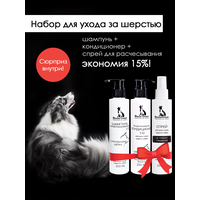 Набор профессиональной косметики для ухода за шерстью собак Doctor Groom: Универсальный, гипоаллергенный шампунь + кондиционер для блеска шерсти + спрей от колтунов легкое расчесывание, 3х200 мл: сравнение цен, характеристики, фото, актуальное наличие и цены.