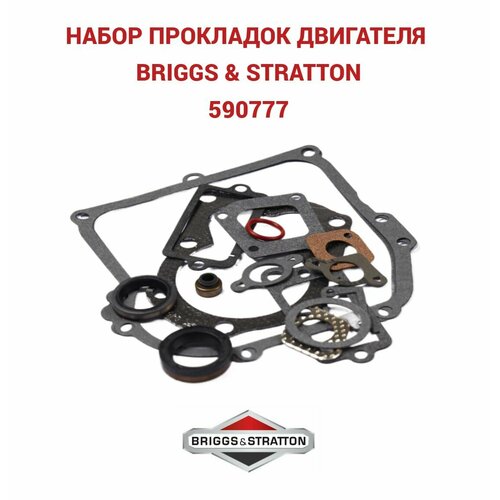 Оригинальные прокладки двигателя 590777, набор - комплект прокладок из различных материалов и других элементов, для ремонта двигателя Briggs&Stratton. Прокладки и сальники служат для уплотнения и герметизации частей двигателя.