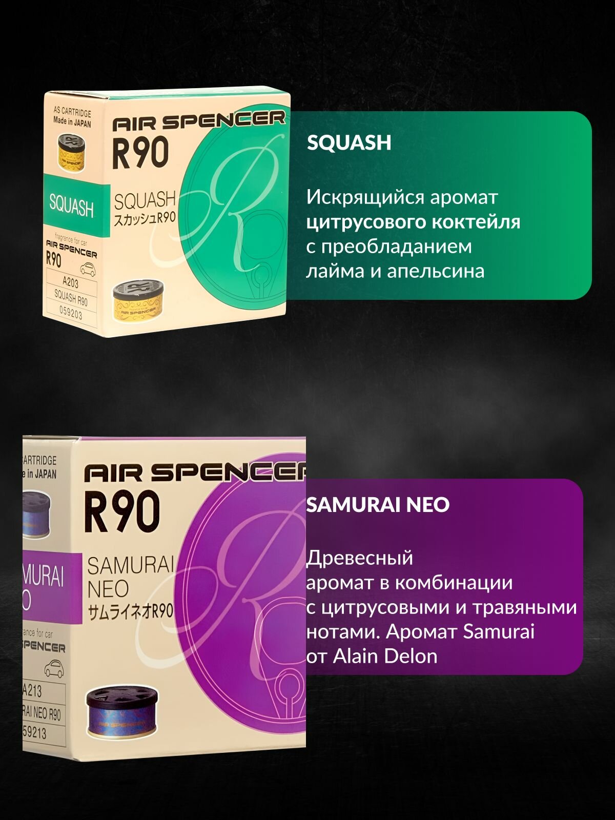 Набор ароматизаторов в машину Eikosha Air Spencer, ароматы R90 Samurai Neo и R90 Squash: сравнение цен, характеристики, фото, актуальное наличие и цены.