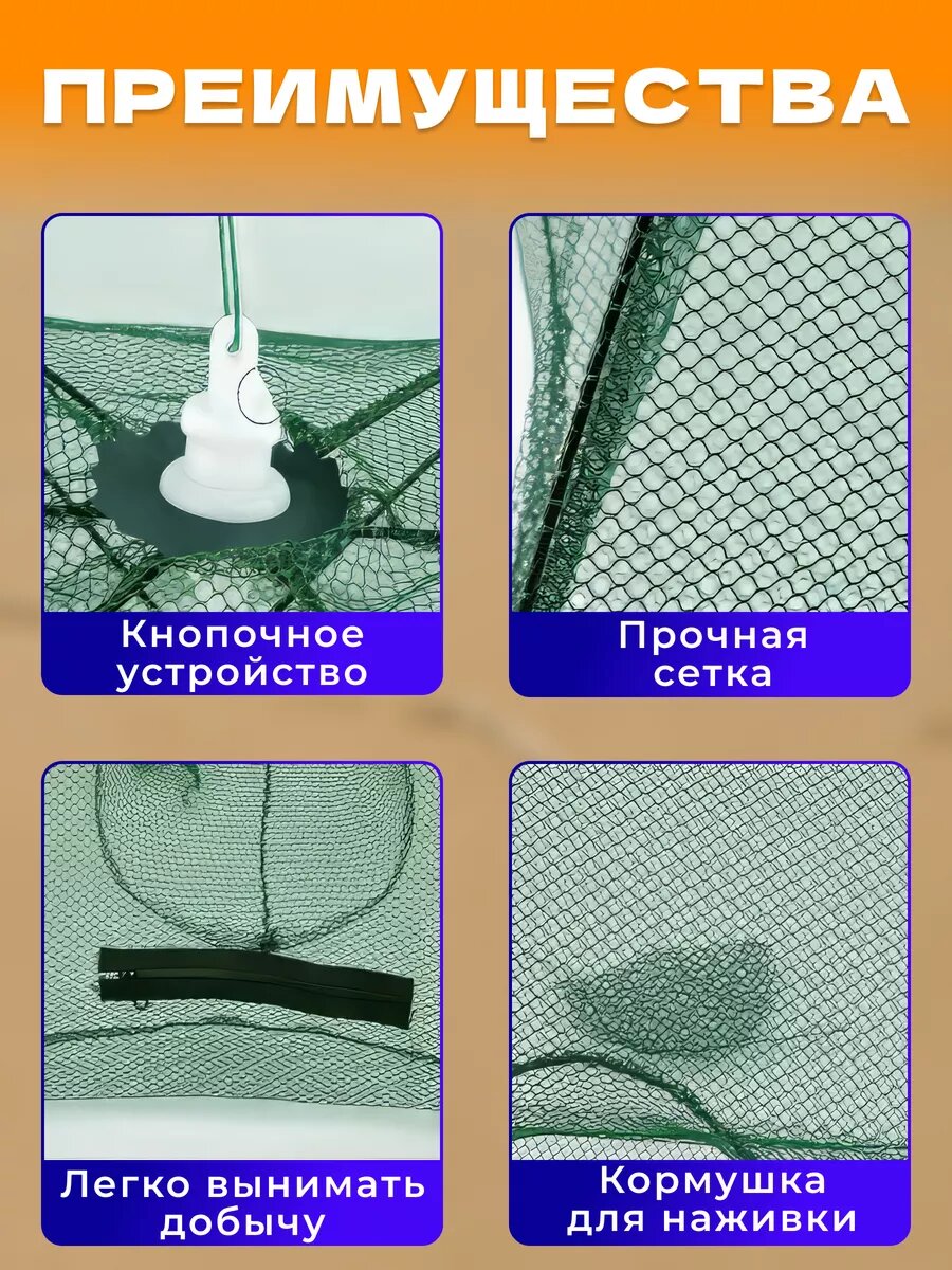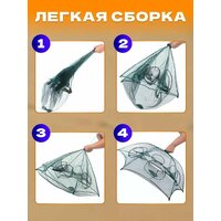 Набор раколовок из трёх штука (паук), комплект иммется варианты 4, 6, 8 ходов , Кто то называет ее рыболовной вершей, ловушкой для раков или рыбы, или просто раколовкой - это все является одним уникальным приспособлением, с помощью которого Вы без усилий не использую удочки , а лишь положив в нее прикорму и опустив в воду получите улов раков или рыбы, она легко раскрывается и закрывается, как зонт. Ее называют раколовка зонт , темно зеленый цвет, что позволяет ей слиться с пейзажами подводного мира и тем самым не вызывать подозрения у рыбы, а запахом прикормки завлекать их внутрь, а вот назад дороги им нет. Состоит она из прочной нейлоновый сетки. Купить Вы ее можете как себе, так и в качестве подарка, и он понравится любому рыболову! Верша рыболовная / ловушка для рыбы и раков / раколовка зелёного цвета / раколовка - это уникальное приспособление, которое позволяет ловить рыбу и раков без удочки.