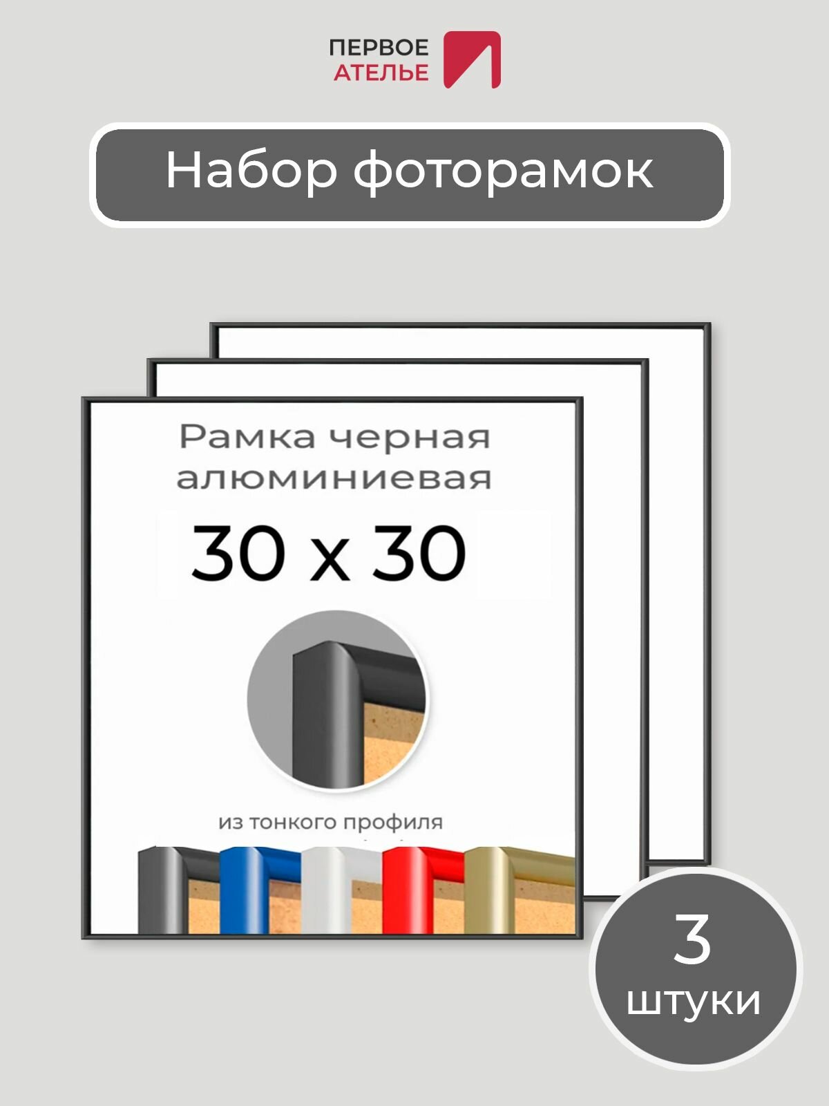 Купить Набор рамок 30х30 см, 3 штуки «Чёрная квадратная фоторамка 30х30 алюминиевая для фото, вышивки, пазлов, алмазной мозаики, постера» от Первое ателье с доставкой по всей России.