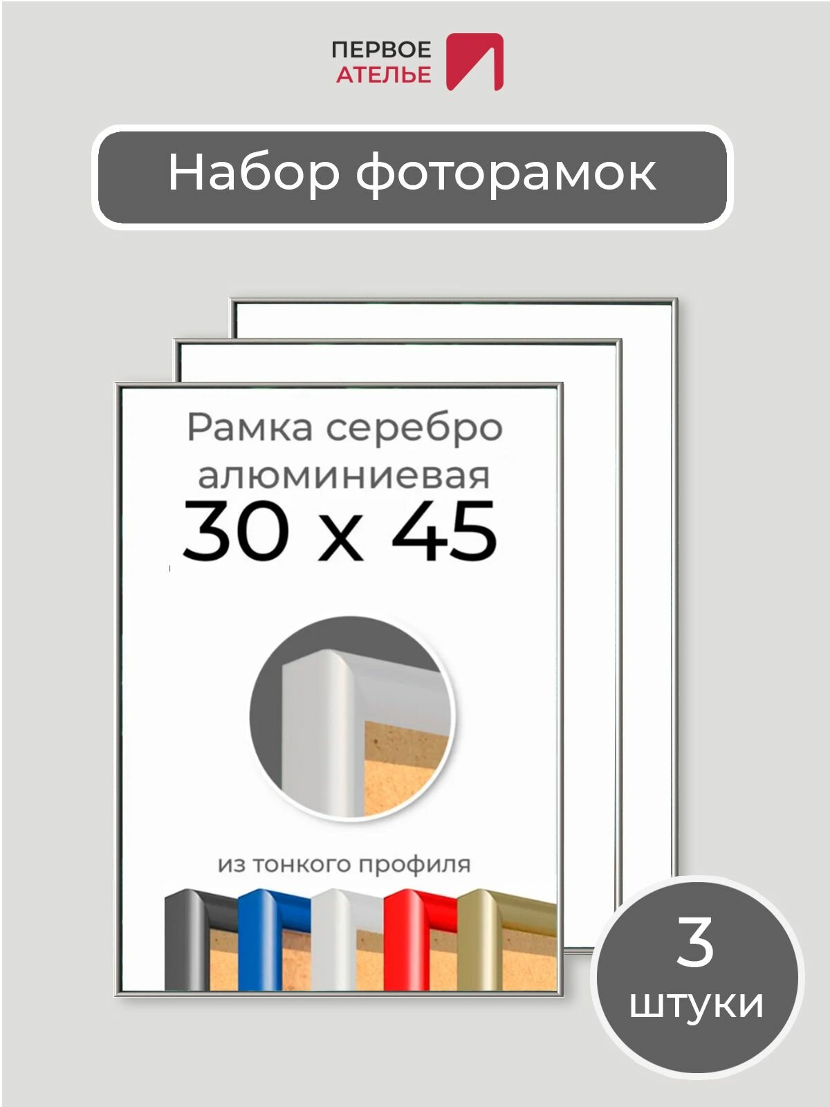 Набор рамок 30х45 см, 3 штуки Первое ателье «Серебристая алюминиевая фоторамка 30х45» для пазла, вышивки, алмазной мозаики, фото, постера