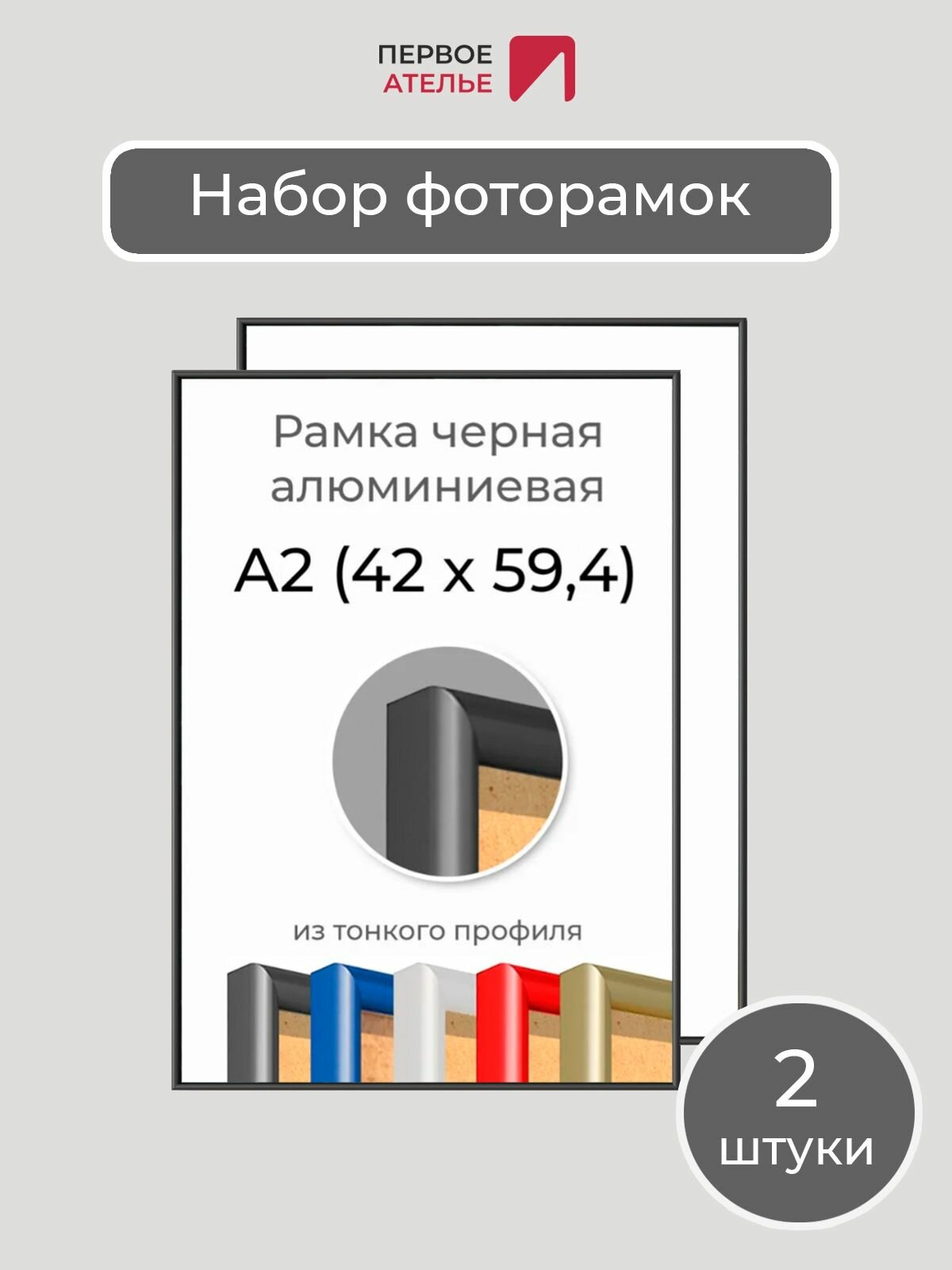 Набор рамок А2, 2 штуки Первое ателье «Черная алюминиевая фоторамка 42х60 см» для фото, постера, грамоты, диплома и сертификата